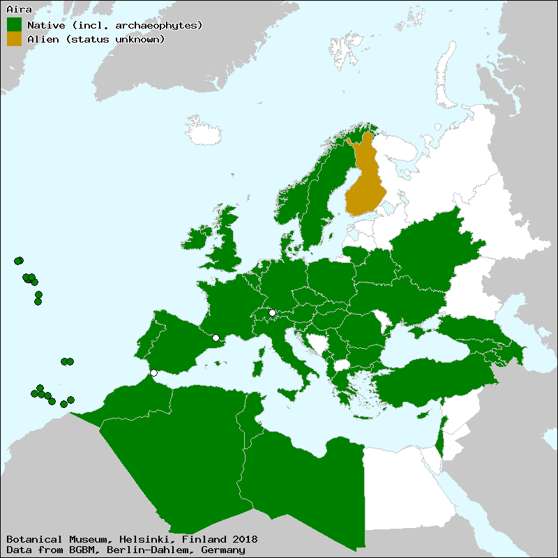 Common names: אָאִירָה (Israel (Hebrew)), Aira (Estonian), aira (Latvian), Hairgrass (English), Schmiele (German), smilgenė (Lithuanian)[Credits]