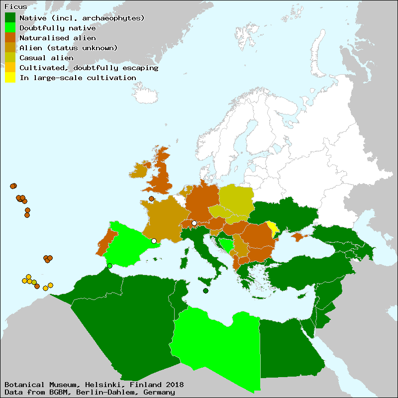 Source: Uotila, P. (2011): Moraceae. – In: Euro+Med Plantbase - the information resource for Euro-Mediterranean plant diversity.