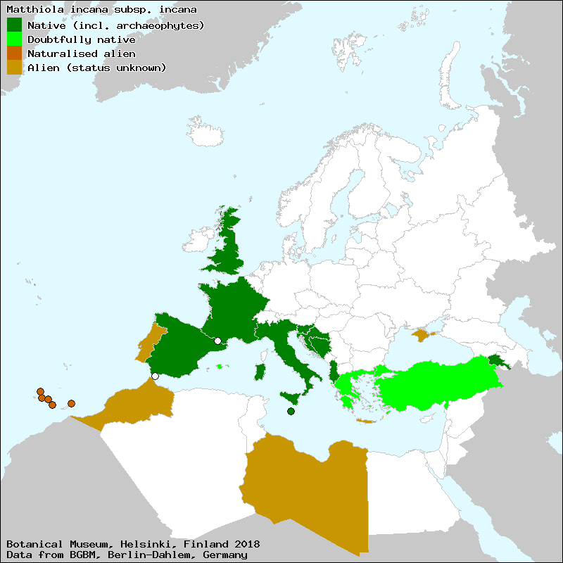 alelí blanco (Spanish, Castillian), alelí encarnado (Spanish, Castillian), barasña (Euskera), briolina (Euskera), cuarentena (Spanish, Castillian), goiveiro-encarnado (Portuguese), violer (Catalan), violer blanc (Catalan), violer bord (Catalan), violer comú (Catalan), violer vermell (Catalan), Левкой однолетний (Russian), Левкой однорiчний (Ukraine), Миксандрэ ануалэ (Moldovian)[Credits] |
