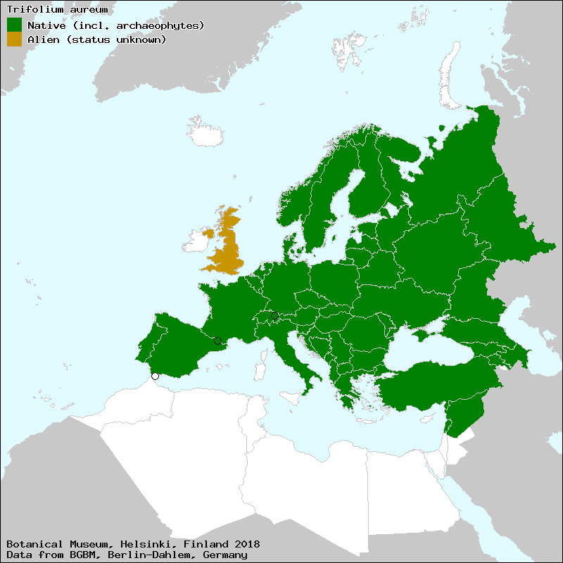 Alien to Irkutsk Province: Taishetski Distr. - Metroposheva,1941., Alien to N.E. Europe Krutaya village in Emeliyanovski Distr. - Dudareva, 1968., Alien to Sakhalin Is.: Peschanoe village in Anivski Distr., In "Flora URSS" & "Flora Kavkaza" it is treated as Trifolium strepens |