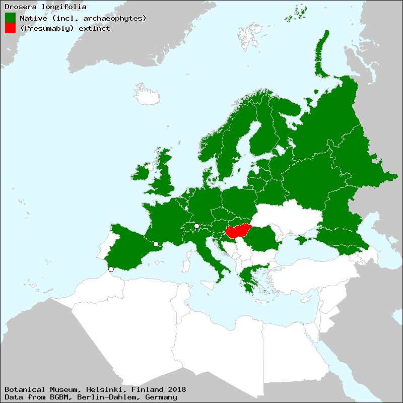 Cailís Mhuire mhór (Irish Gaelic), Dolgolistna rosika (Slovene), Drosera a foglie allungate (Italian), dròsera longifolia (Catalan), dròsera longifòlia (Catalan), drósera mayor (Spanish, Castillian), garlapu rasene (Latvian), Gwlithlys Mawr (Welsh), ilgalapė saulašarė (Lithuanian), Langblättriger Sonnentau (German), Lange zonnedauw (Dutch), pikalehine huulhein (Estonian), rosička anglická (Slovak), Rosiczka długolistna (Polish), rosnatka anglická (Czech), Rosolida (Italian), Rossolis à longues feuilles (French), Rossolis d’Angleterre (French), росянка английская (Russian), росянка длиннолистная (Russian)[Credits] |