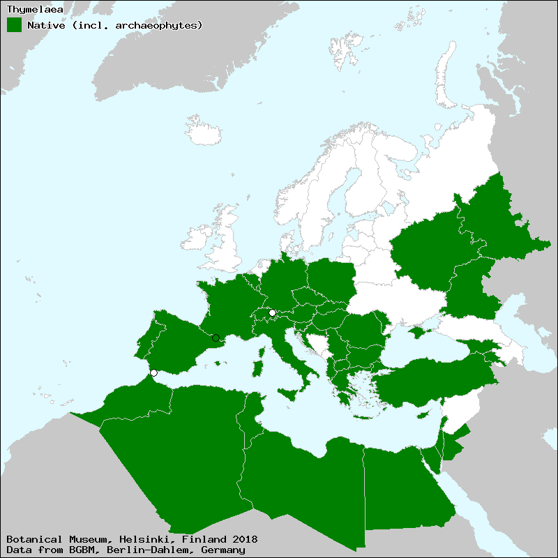 Pedrol, J. (2011): Thymelaeaceae. – In: Euro+Med Plantbase - the information resource for Euro-Mediterranean plant diversity. This work is licensed under a Creative Commons Attribution-ShareAlike 3.0 Unported license (CC-By-SA-3.0 Unported).