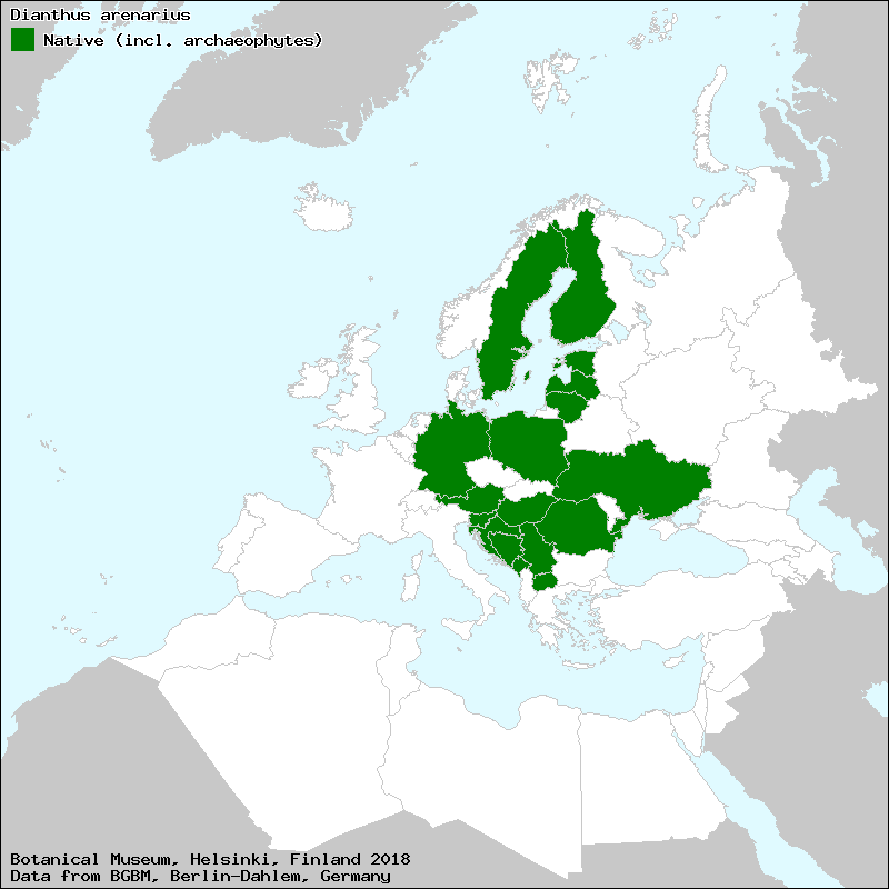 Goździk piaskowy (Polish), hietaneilikka (Finnish), hvozdík písečný český (Czech), Nõmmnelk (Estonian), sandnejlika (Swedish), Sand-Nelke (German), sandnellik (Norwegian), Sand-Nellike (Danish), smiltāju neļķe (Latvian), smiltyninis gvazdikas (Lithuanian), гвоздика песчаная (Russian)[Credits] |