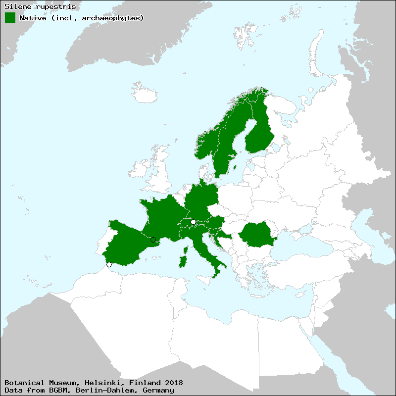 Silène des rochers (French), bergglim (Swedish), Felsen-Leimkraut (German), Fjeld-Limurt (Danish), kalliokohokki (Finnish), Silène des rochers (French), silene rupestre (Catalan), Silene rupestre (Italian), silenka skalní (Czech), småsmelle (Norwegian), stjenska pušina (Croat), Σιληνή η οδοντόχρωμος (Greek)[Credits] |