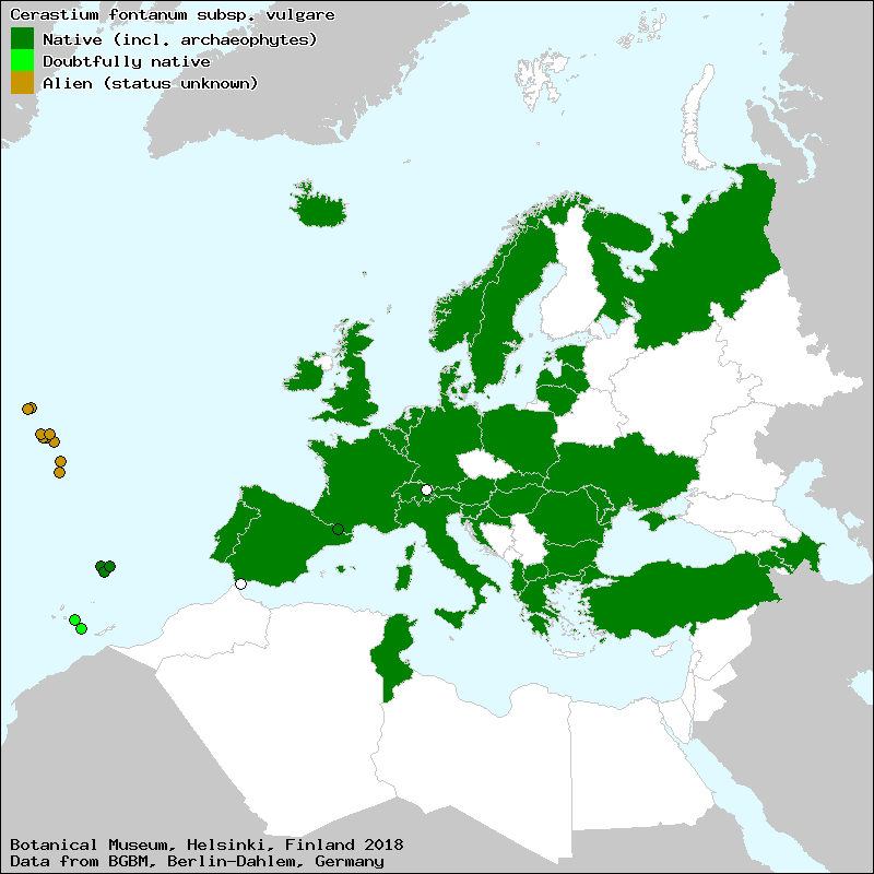 Almindelig Hønsetarm (Danish), busenasti rožac (Croat), Céraiste vulgaire (French), Cluas luchóinge (Irish Gaelic), Clust Llygoden Culddail (Welsh), Ensidig Hønsetarm (Danish), forquitela (Galician), Gemeines Hornkraut (German), Gewöhnliches Hornkraut (German), Gewone hoornbloem (Dutch), Glanzende hoornbloem (Dutch), herba d´hort (Catalan), hönsarv (Swedish), kainuunnurmihärkki (Finnish), kal hönsarv (Swedish), merusa (Spanish, Castillian), meruxa (Spanish, Castillian), Navadna smiljka (Slovene), oreja de ratón (Spanish, Castillian), Peverina comune (Italian), piennarnurmihärkki (Finnish), Rogownica pospolita (Polish), rožec obecný luční (Czech), rožec obyčajný (Slovak), smal hönsarv (Swedish), Κεράστιον το αδενώδες (Greek), Κεράστιον το τρίοδον (Greek), Струна кукошулуй де-лункэ (Moldovian), Чимли дəли ҹинҹилим (Azerbaijani), ясколка дернистая (Russian)[Credits] |