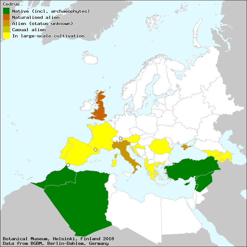 Raab-Straube, E. von (2014): Gymnospermae. – In: Euro+Med Plantbase - the information resource for Euro-Mediterranean plant diversity. This work is licensed under a Creative Commons Attribution-ShareAlike 3.0 Unported license (CC-By-SA-3.0 Unported).