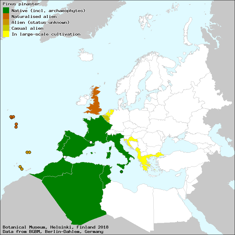 almorzagaera (Spanish, Castillian), barrugo (Spanish, Castillian), barrujo (Spanish, Castillian), burrajo (Spanish, Castillian), cachipuercas (Spanish, Castillian), cándalos (Spanish, Castillian), chirriones (Spanish, Castillian), chisto (Spanish, Castillian), chistro (Spanish, Castillian), itsas pinu (Euskera), itsas pinua (Euskera), méano (Spanish, Castillian), melera (Spanish, Castillian), miera (Spanish, Castillian), miera de gusano (Spanish, Castillian), miera virgen (Spanish, Castillian), migollo (Spanish, Castillian), pi (Catalan), pi (Majorcan), pi bo (Catalan), pi bord (Catalan), pi de fulla llarga (Catalan), pi de llei (Catalan), pi de pinya (Catalan), pi de pinyó (Catalan), pi marí (Catalan), pi marí (Valencian), pi marítim (Catalan), pi marítim (Majorcan), pi marítim (Valencian), pi melis (Catalan), pi pinyer (Catalan), pi pinyoner (Catalan), pi redó (Catalan), pi rodeno (Valencian), pi rodesno (Valencian), pi vertader (Catalan), pimpollo (Spanish, Castillian), pin (Catalan), piña (Spanish, Castillian), pinassa (Catalan), pinastre (Catalan), pinastre (Valencian), piñeiro (Galician), piñeiro bravo (Galician), piñeiro do país (Galician), piñeiro galego (Galician), pinheiro (Portuguese), pinheiro bravo (Portuguese), pinheiro bravo do reino (Portuguese), pinheiro negro (Portuguese), pinheiro-bravo (Portuguese), pinheiro-marítimo (Portuguese), pinieiro bravo (Galician), pino (Asturian), pino (Spanish, Castillian), piño (Spanish, Castillian), pino bermejo (Spanish, Castillian), pino borde (Spanish, Castillian), pino bravo (Galician), pino bravo (Spanish, Castillian), pino carrasco (Spanish, Castillian), pino chamoso (Spanish, Castillian), pino copetero (Spanish, Castillian), pino culebrero (Spanish, Castillian), pino de aire (Spanish, Castillian), pino de Burdeos (Spanish, Castillian), pino de Flandes (Spanish, Castillian), pino de la resina (Spanish, Castillian), pino de las landas (Spanish, Castillian), pino de madera (Spanish, Castillian), pino de resina (Spanish, Castillian), pino do pais (Galician), pino galego (Galician), pino gallego (Spanish, Castillian), pino lagartero (Spanish, Castillian), pino laricio (Spanish, Castillian), pino marítimo (Spanish, Castillian), pino morisco (Spanish, Castillian), pino negral (Galician), pino negral (Spanish, Castillian), pino negrillo (Spanish, Castillian), pino negro (Spanish, Castillian), pino nevral (Spanish, Castillian), pino pinagral (Spanish, Castillian), pino raposo (Spanish, Castillian), pino resinero (Spanish, Castillian), pino rodeno (Spanish, Castillian), pino ródeno (Spanish, Castillian), pino rodero (Spanish, Castillian), pino rodesno (Spanish, Castillian), pino rodezno (Spanish, Castillian), pino royal (Spanish, Castillian), pino rubial (Spanish, Castillian), pino ruezno (Spanish, Castillian), pino volador (Spanish, Castillian), pinocha (Spanish, Castillian), piñote (Spanish, Castillian), pinu (Asturian), pinua (Euskera), piñu-gorri (Euskera), pinyó/pinyons (Catalan), pynia (Catalan), ramera (Spanish, Castillian), rodeno (Spanish, Castillian), roña (Spanish, Castillian), royal (Spanish, Castillian), tabernazo (Spanish, Castillian), tabernera (Spanish, Castillian), tamabaruja (Spanish, Castillian), tamuja (Spanish, Castillian), tamujo (Spanish, Castillian), tarambujas (Spanish, Castillian), teia (Catalan), torroll (Spanish, Castillian), torrollos (Spanish, Castillian), zarabuja (Spanish, Castillian)[Credits] |
