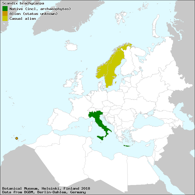 Homotypic synonyms: Scandix pecten-veneris subsp. brachycarpa (Guss.) Thell.