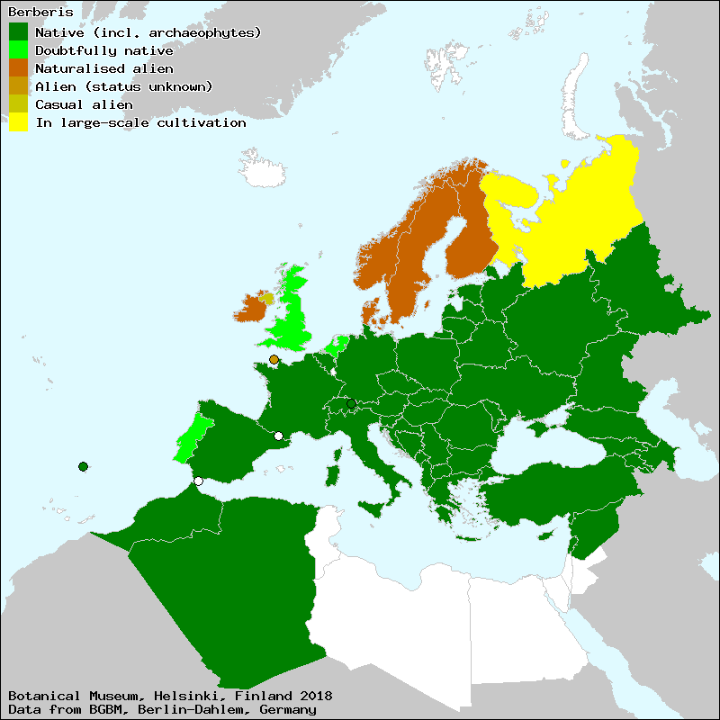 Harber, J. & Raab-Straube, E. von (2015): Berberidaceae. – In: Euro+Med Plantbase - the information resource for Euro-Mediterranean plant diversity. This work is licensed under a Creative Commons Attribution-ShareAlike 3.0 Unported license (CC-By-SA-3.0 Unported).