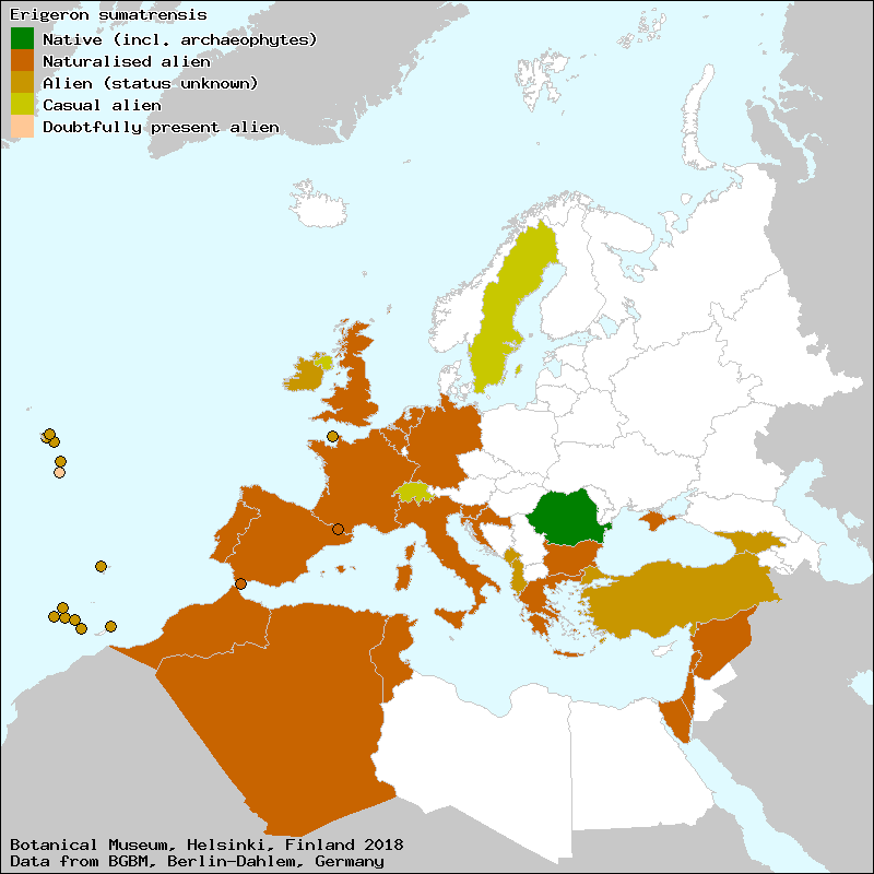 Saeppola di Naudin (Italian), Vergerette de Barcelone (French), Vergerette de Naudin (French), Vergerette de Sumatra (French), Vergerette élevée (French), קייצת מלבינה (Israel (Hebrew)), קַיֶּצֶת מַלְבִּינָה (Israel (Hebrew)), أَريغارون نودان (Arabic)[Credits] |