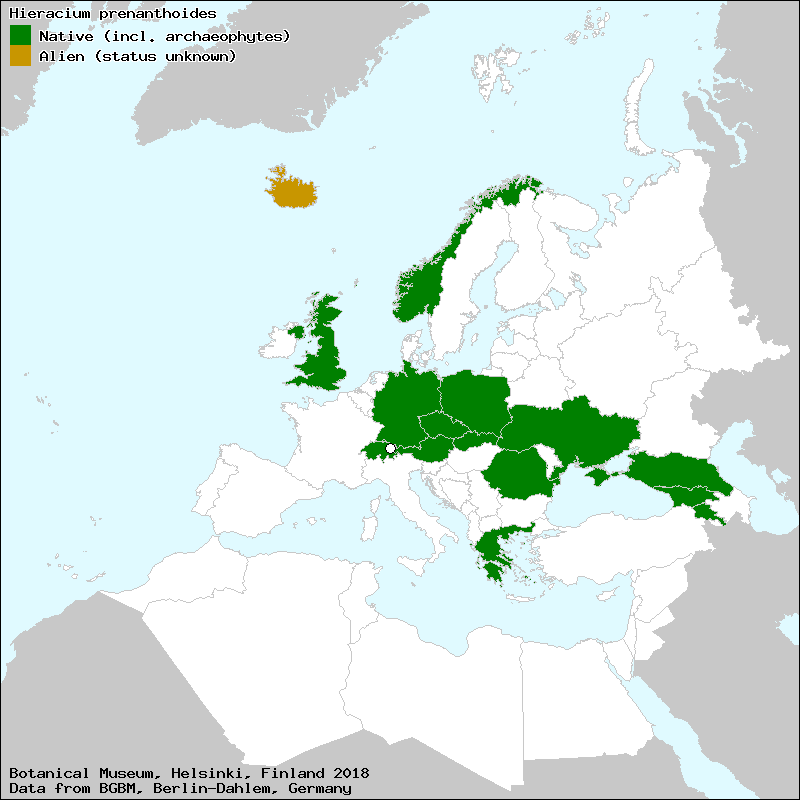 Épervière faux Prénanthe (French), Hasenlattich-Habichtskraut (German), Jastrzębiec przenętowaty (Polish), Sparviere a foglie di Prenanthes (Italian), Suličastolistna škržolica (Slovene), Ястребинка пренантовидная (Russian), Ճուռակախոտ փրենանթանման (Armenian)[Credits] |