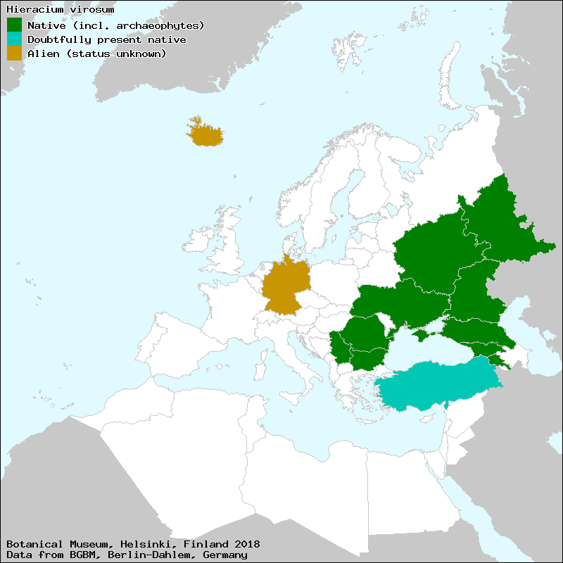 Нечуйвiтер отруйний (Ukraine), Отровна румянка (Bulgarian), Ястребинка ядовитая (Russian), Ճուռակախոտ թունավոր (Armenian)[Credits] |