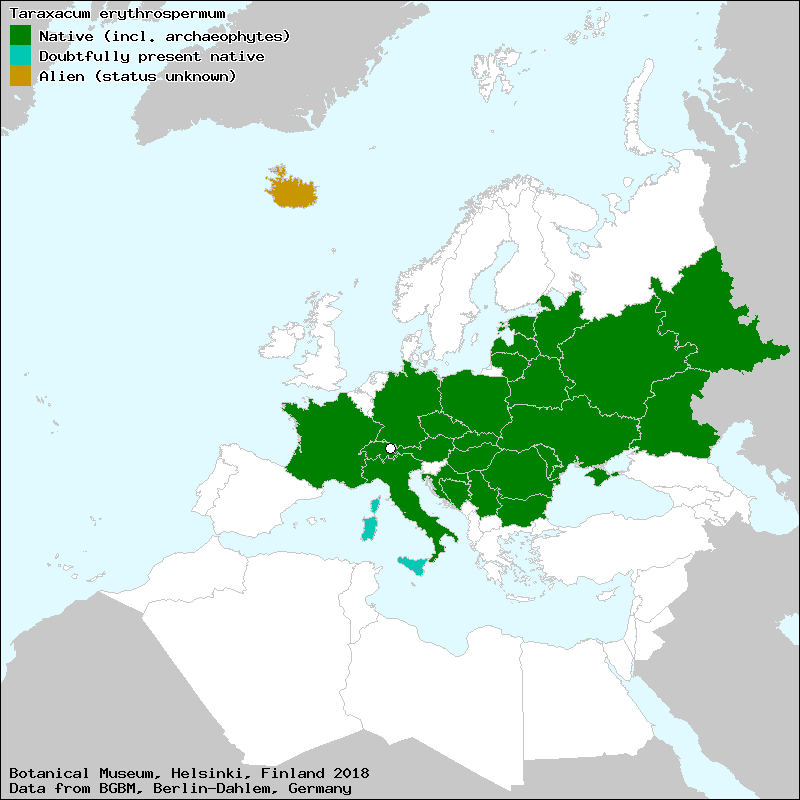 Pissenlit à feuilles lisses (French), Пэпэдие еритроспермэ (Moldovian), camarroja (Spanish, Castillian), diente de león (Spanish, Castillian), hierba de la calentura (Spanish, Castillian), pitones (Spanish, Castillian), teta de vaca (Spanish, Castillian), tetas de vaca (Spanish, Castillian), tetica de vaca (Spanish, Castillian), teticas (Spanish, Castillian)[Credits] |