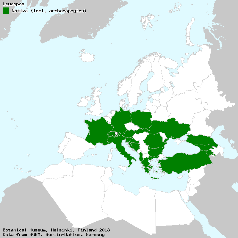 Foggi, B. & Müller, J. (2009): Leucopoa. – In: Valdés, B. & Scholz, H. (ed.); with contributions from Raab-Straube, E. von & Parolly, G.: Poaceae. Euro+Med Plantbase - the information resource for Euro-Mediterranean plant diversity. This work is licensed under a Creative Commons Attribution-ShareAlike 3.0 Unported license (CC-By-SA-3.0 Unported).
