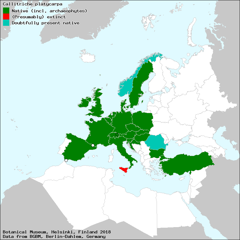 Uotila, P. (2017+): Callitriche. – In: Euro+Med Plantbase - the information resource for Euro-Mediterranean plant diversity. This work is licensed under a Creative Commons Attribution-ShareAlike 3.0 Unported license (CC-By-SA-3.0 Unported).