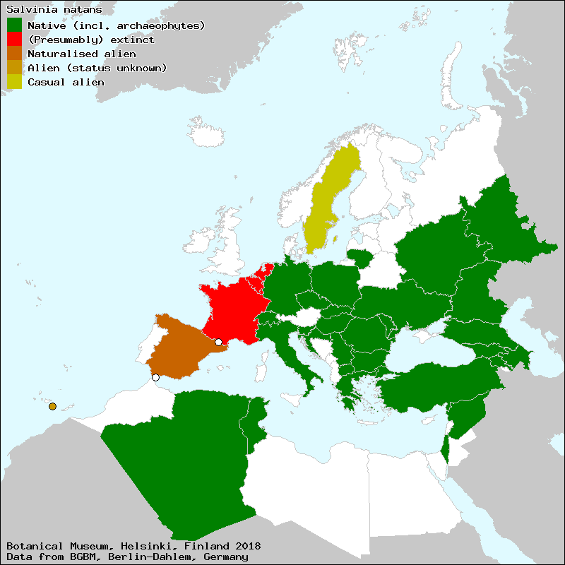 Marsilée nageante (French), Salvinia nageante (French), Salvinie nageante (French), Erba pesce (Italian), Gewöhnlicher Schwimmfarn (German), Gewöhnlich-Schwimmfarn (German), nepukalka vzplývající (Czech), Peştişoară (Roumanian), plavajoči plavček (Slovene), plivajuća nepačka (Croat), plūduriuojančioji plūstis (Lithuanian), Rucaöröm (Hungarian), salvínia (Catalan), Salvínia plávajúca (Slovak), Salvinie nageante (French), Salwinia pływająca (Polish), Schwimmfarn (German), Vlotvaren (Dutch), Водена папрат (Serbian), Плаваща лейка (Bulgarian), салъвiнiя плаваюча (Ukraine), салъвиния плавающая (Russian), Үзән салвиния (Azerbaijan)[Credits] |