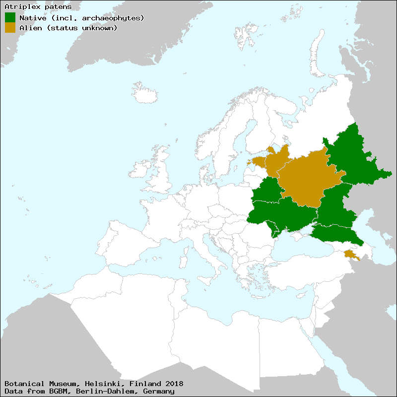 "Atriplex crassifolia" sec. - Flora Europae Orientalis 9 Mir i Semia-XCV Petropoli 1996.[ma for Europe, see Suchorukow, A. P. (2007) - Zur Systematik und Chorologie der in Russland und den benachbarten Staaten (in den Grenzen der ehemaligen USSR) vorkommenden Atriplex-Arten (Chenopodiaceae) - Ann. Naturhist. Mus. Wien 108: 307-420.] |