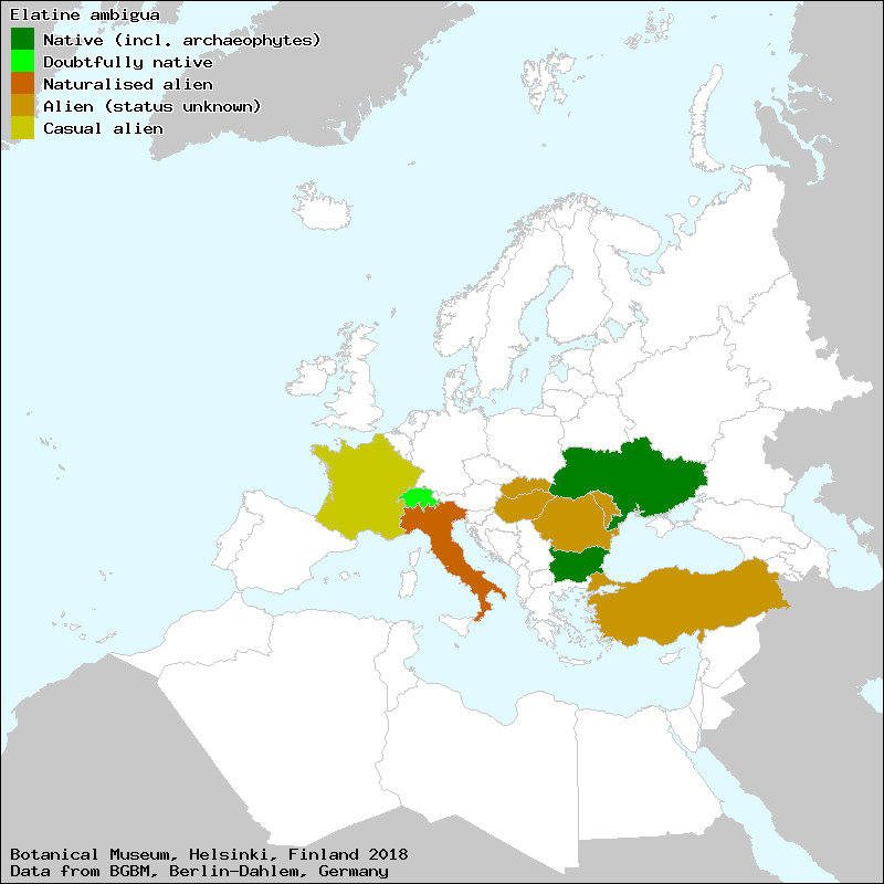 Source: Uotila, P. (2009): Elatinaceae. – In: Euro+Med Plantbase - the information resource for Euro-Mediterranean plant diversity.