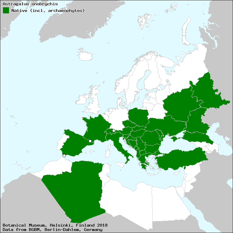 A. borysthenicus is a maritime ecotype of A. onobrychis, Astragalus borysthenicus Klokov: Synonym [01/28/97 17:15], Astragalus chlorocarpus f. albiflorus Vandas., Astragalus circassicus Grossh.: Synonym [01/28/97 17:16], Astragalus onobrychis f. albiflorus (Schur)Gusul., Astragalus onobrychis f. brevifoliatus (Grecescu)Gusul., Astragalus onobrychis f. grandiflorus Savul. & Rayss., Astragalus onobrychis f. kraljevensis Novak., Astragalus onobrychis f. leucanthus Beck., Astragalus onobrychis var chlorocarpus subf. albiflorus (Vandas)Hayek. |
