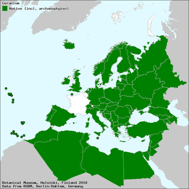 Aedo, C. (2009): Geranium. – In: Aedo, C., Estébanez, B. & Navarro, C. (ed.); with contributions from Raab-Straube, E. von & Parolly, G.: Geraniaceae. Euro+Med Plantbase - the information resource for Euro-Mediterranean plant diversity. This work is licensed under a Creative Commons Attribution-ShareAlike 3.0 Unported license (CC-By-SA-3.0 Unported).