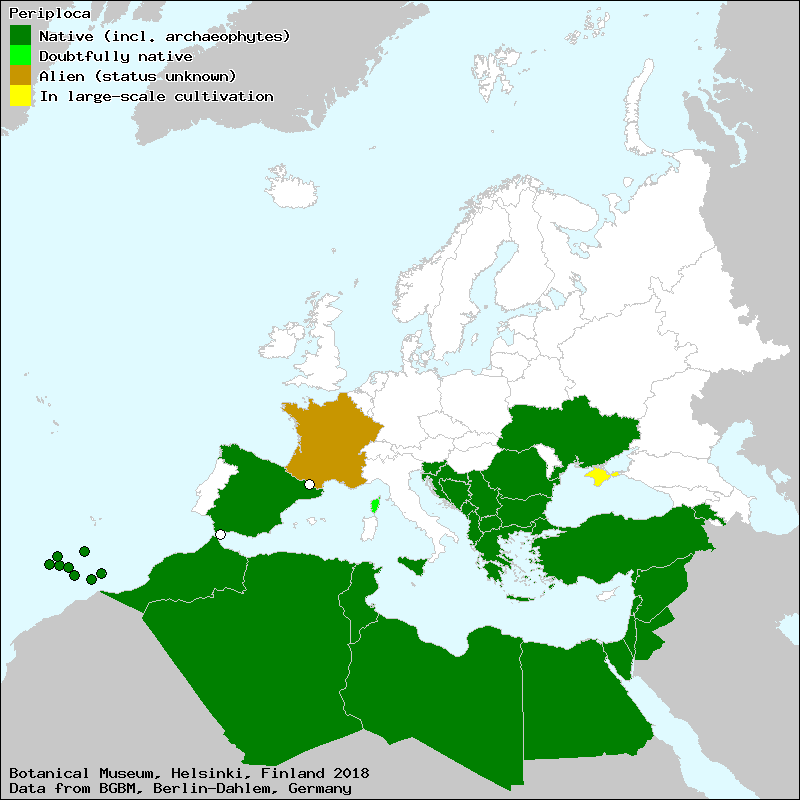 Marhold, K. (2011): Apocynaceae. – In: Euro+Med Plantbase - the information resource for Euro-Mediterranean plant diversity. This work is licensed under a Creative Commons Attribution-ShareAlike 3.0 Unported license (CC-By-SA-3.0 Unported).