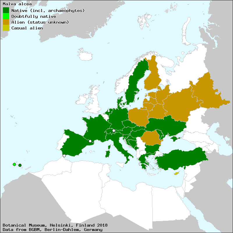 alcea (Catalan), alcea (Spanish, Castillian), alcea bastarda (Portuguese), alcea con hojas de perejil (Spanish, Castillian), alcea vulgar (Spanish, Castillian), cañavera blanca (Spanish, Castillian), canhavera brava (Portuguese), hierba de San Simón (Spanish, Castillian), malva de Hungría (Spanish, Castillian), malva de Ungría (Portuguese), malva montés (Spanish, Castillian), malva montesina (Portuguese), malva montesina (Spanish, Castillian), malvavisco montesino (Spanish, Castillian), malvavisco salvaje (Spanish, Castillian), malvavisco silvestre (Portuguese), malví bord (Catalan)[Credits] |