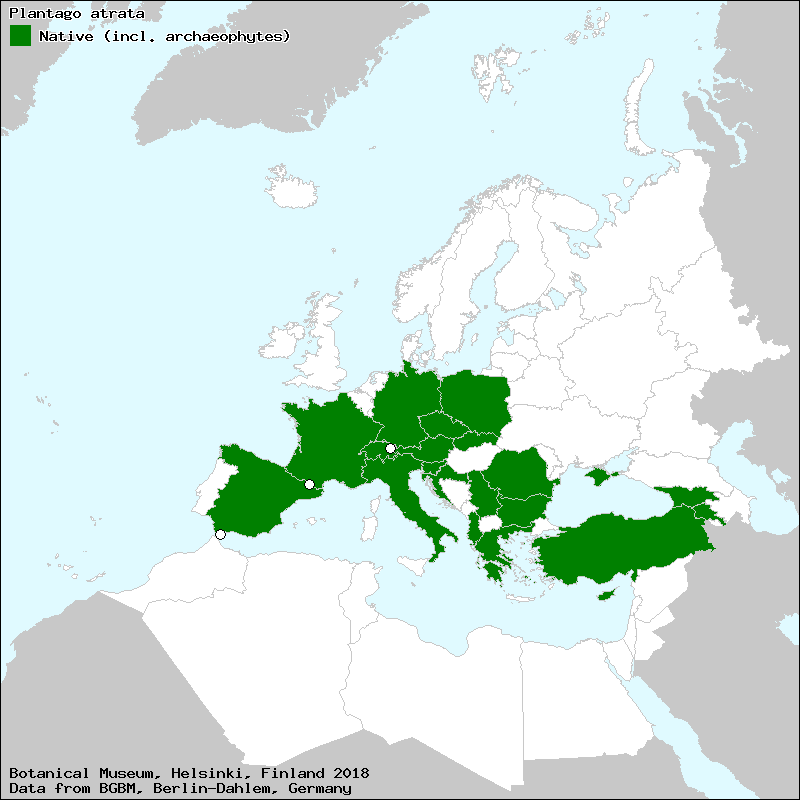 Marhold, K. (2011+): Plantago. – In: Euro+Med Plantbase - the information resource for Euro-Mediterranean plant diversity. This work is licensed under a Creative Commons Attribution-ShareAlike 3.0 Unported license (CC-By-SA-3.0 Unported).
