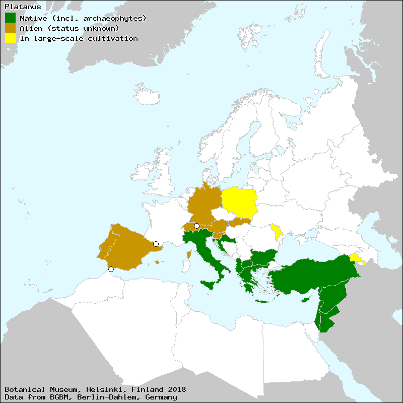 Source: Marhold, K. (2011): Platanaceae. – In: Euro+Med Plantbase - the information resource for Euro-Mediterranean plant diversity.