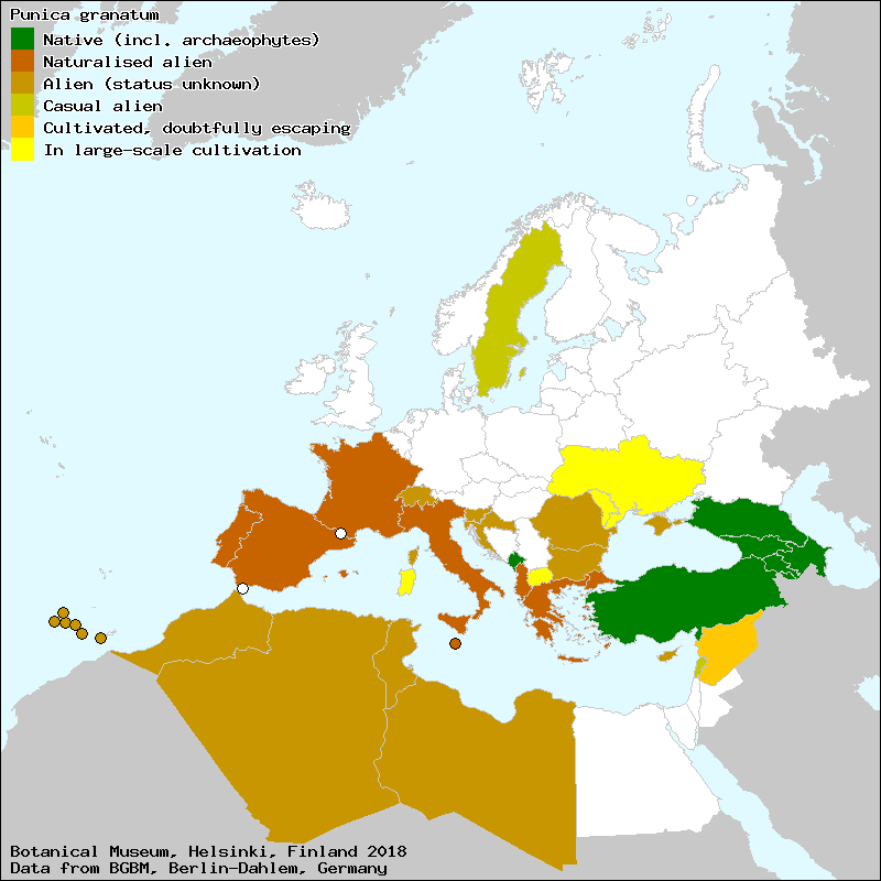 agrauz (Spanish, Castillian), agrios (Spanish, Castillian), albar (Spanish, Castillian), alvarés (Spanish, Castillian), anigrada (Portuguese), anigradas (Portuguese), badoc (Catalan), balaustia (Portuguese), balaustia (Spanish, Castillian), balaustio (Portuguese), balaustra (Spanish, Castillian), balaustria (Spanish, Castillian), balaustrias (Spanish, Castillian), balustia (Spanish, Castillian), banastreira (Portuguese), cagines (Spanish, Castillian), de pasa (Spanish, Castillian), de piñón tierno (Spanish, Castillian), dibalaustio (Portuguese), graná (Spanish, Castillian), granada (Spanish, Castillian), granada ácida (Spanish, Castillian), granada agria (Spanish, Castillian), granada agria colorada (Spanish, Castillian), granada agridulce (Spanish, Castillian), granada albar (Spanish, Castillian), granada cagina (Spanish, Castillian), granada de viuda (Spanish, Castillian), granada diente de perro (Spanish, Castillian), granada dulce (Spanish, Castillian), granada dulce sin piñón (Spanish, Castillian), granada fina (Spanish, Castillian), granada frailera (Spanish, Castillian), granada herreña (Spanish, Castillian), granada miniatura (Spanish, Castillian), granada mollar sin hueso (Spanish, Castillian), granada silvestre (Spanish, Castillian), granadas (Spanish, Castillian), granado (Aragonese), granado (Asturian), granado (Spanish, Castillian), granado agrio (Spanish, Castillian), granado borde (Spanish, Castillian), granado bravío (Spanish, Castillian), granado común (Spanish, Castillian), granado loco (Spanish, Castillian), granado silvestre (Spanish, Castillian), granadondo (Euskera), granao (Spanish, Castillian), granás (Spanish, Castillian), magrana (Catalan), magrana (Valencian), magrana agridulce (Majorcan), magrana aubat (Majorcan), magraner (Catalan), magraner (Majorcan), magraner (Valencian), magraner agre (Catalan), magraner bord (Catalan), magraner bord (Valencian), magraner nan (Catalan), magrano (Spanish, Castillian), malagraner (Catalan), malgrana (Catalan), manglaner (Catalan), manglanera (Aragonese), manglanera (High Aragonese), manglanera (Spanish, Castillian), manglano (Spanish, Castillian), mangranas (Aragonese), mangraner (Catalan), mangraner (Valencian), mangraner bort (Valencian), mangranera (Aragonese), mangranera (High Aragonese), mangranero (Spanish, Castillian), mangranés (Valencian), mangrano (Catalan), menglanera (Aragonese), mengraner (Catalan), mengraner (Valencian), mengraner agre (Catalan), mengraner agre (Valencian), mengraner borde (Valencian), mengranera (Aragonese), mengranero (Spanish, Castillian), mengranero (Valencian), mengranes bordes (Valencian), mil en grana (Aragonese), milgrada (Portuguese), milgrano (Spanish, Castillian), milgreira (Galician), milgreira (Portuguese), miligrâ (Portuguese), miligrana (Portuguese), miligranda (Galician), miligrandeira (Galician), miligrandeira (Portuguese), milingrandeira (Galician), milingrandeira (Portuguese), minglana (Euskera), minglanas (Aragonese), minglanera (Aragonese), minglanera (High Aragonese), minglanera (Spanish, Castillian), mingrana (Euskera), mingranas (Aragonese), mingranera (Aragonese), mingranera (High Aragonese), mingranera (Spanish, Castillian), mingrano (Spanish, Castillian), mingranondo (Euskera), mingranondoa (Euskera), minguianera (Aragonese), mirgrâ (Portuguese), mollar (Spanish, Castillian), pell de magrana (Catalan), pillaltuna (Euskera), piñonenca (Spanish, Castillian), punisagarrondo (Euskera), româa (Portuguese), román (Spanish, Castillian), romaneira (Portuguese), romanzeira (Galician), romanzeira (Portuguese), romazeira (Galician), romazeira (Portuguese), româzeira (Portuguese), romeira (Galician), romeira (Portuguese), romeneira (Portuguese), Ρόα (Greek), Ρογδιά (Greek), Ροδιά (Greek), Ροϊδιά (Greek), Ρουδιά (Greek), Ρωβκά (Greek)[Credits] |
