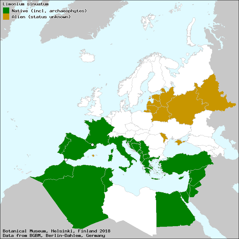 capitana (Spanish, Castillian), capitanos (Spanish, Castillian), consuelda de Cádiz (Spanish, Castillian), Fshesa gjirake (Albanian), Kerti sóvirág (Hungarian), limonio (Asturian), limonka chobotnatá (Czech), limonka zohnutá (Slovak), mano de hierro (Spanish, Castillian), perpetuas roches (Valencian), siempreviva (Spanish, Castillian), siempreviva azul (Spanish, Castillian), siempreviva de flor (Spanish, Castillian), Statice alata (Italian), Zatrwian wrębny (Polish), Στατική η κολπωτή (Greek)[Credits] |