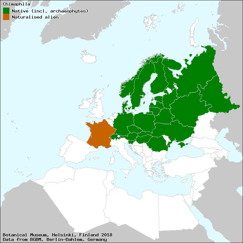 Raab-Straube, E. von (2016): Chimaphila. – In: Euro+Med Plantbase - the information resource for Euro-Mediterranean plant diversity. This work is licensed under a Creative Commons Attribution-ShareAlike 3.0 Unported license (CC-By-SA-3.0 Unported).
