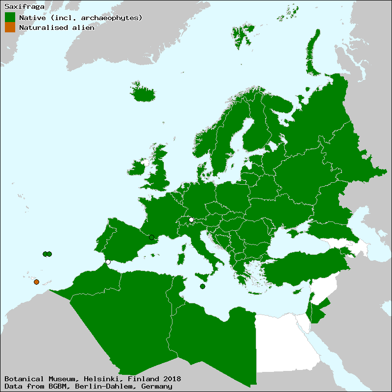 Marhold, K. (2011): Saxifragaceae. – In: Euro+Med Plantbase - the information resource for Euro-Mediterranean plant diversity. This work is licensed under a Creative Commons Attribution-ShareAlike 3.0 Unported license (CC-By-SA-3.0 Unported).