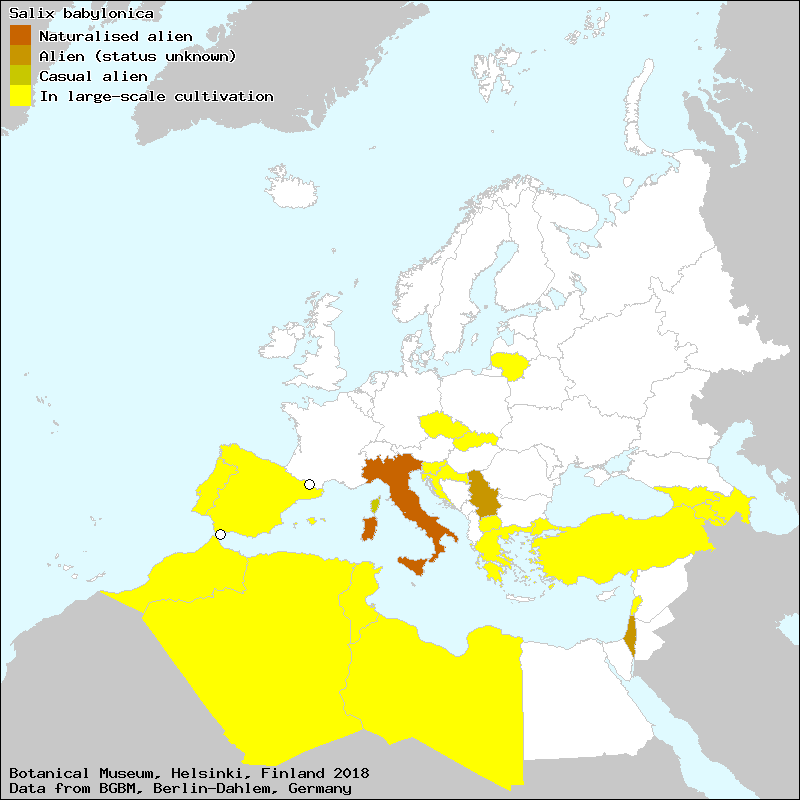 árbol de la humildad (Spanish, Castillian), árbol del desmayo (Aragonese), árbol del desmayo (Spanish, Castillian), choradeira (Portuguese), chorao (Portuguese), chorâo (Portuguese), desmai (Catalan), desmai (Majorcan), desmay (Catalan), desmay (Majorcan), desmayo (Aragonese), desmayo (High Aragonese), desmayo (Spanish, Castillian), desmayu (Asturian), esmai (Catalan), gavarnera (Catalan), gavarnera (Valencian), gavarrera (Valencian), gavarrera canina (Catalan), gavernera (Catalan), llorón (Asturian), llorón (Spanish, Castillian), mimbral (Spanish, Castillian), mimbre (Spanish, Castillian), mimbre llorón (Spanish, Castillian), plorador (Catalan), ploradora (Catalan), roser bord (Catalan), roser boscà (Catalan), roser d´hivern (Catalan), roser de bardissa (Catalan), roser de marges (Catalan), roser de muntanya (Catalan), roser gavarrer (Catalan), roser salvatge (Catalan), salce desmayo (Spanish, Castillian), salce gatillo (Spanish, Castillian), salce llorón (Spanish, Castillian), salcinu (Spanish, Castillian), salgueiro (Portuguese), salgueiro chorâo (Portuguese), salgueiro de Babilonia (Portuguese), salgueiro-chorâo (Portuguese), salz llorón (High Aragonese), salz plorón (Aragonese), sauce (Spanish, Castillian), sauce babilónico (Spanish, Castillian), sauce de Babilonia (Spanish, Castillian), sauce de Levante (Spanish, Castillian), sauce llorón (Aragonese), sauce llorón (Spanish, Castillian), sauce oriental (Spanish, Castillian), tapacul (Catalan), zauce (Spanish, Castillian), zuain nigargille (Euskera), zume negarti (Euskera), zume negartia (Euskera)[Credits] |