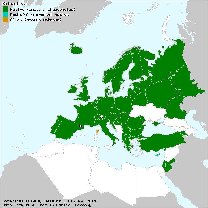 Marhold, K. (2011+): Rhinanthus. – In: Euro+Med Plantbase - the information resource for Euro-Mediterranean plant diversity. This work is licensed under a Creative Commons Attribution-ShareAlike 3.0 Unported license (CC-By-SA-3.0 Unported).