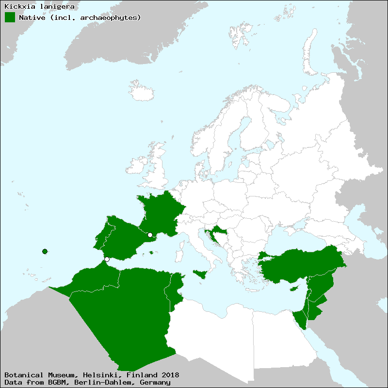 Marhold, K. (2011+): Kickxia. – In: Euro+Med Plantbase - the information resource for Euro-Mediterranean plant diversity. This work is licensed under a Creative Commons Attribution-ShareAlike 3.0 Unported license (CC-By-SA-3.0 Unported).