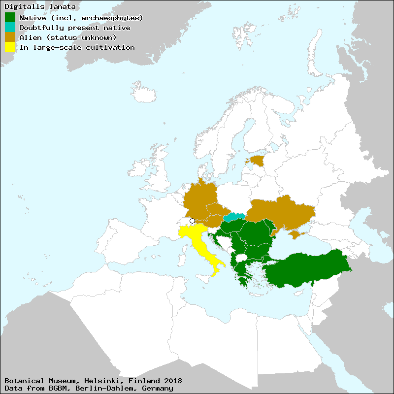 Marhold, K. (2011+): Digitalis. – In: Euro+Med Plantbase - the information resource for Euro-Mediterranean plant diversity. This work is licensed under a Creative Commons Attribution-ShareAlike 3.0 Unported license (CC-By-SA-3.0 Unported).