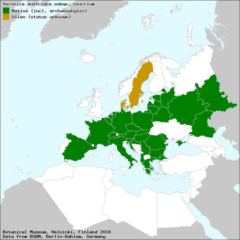Marhold, K. (2011+): Veronica. – In: Euro+Med Plantbase - the information resource for Euro-Mediterranean plant diversity. This work is licensed under a Creative Commons Attribution-ShareAlike 3.0 Unported license (CC-By-SA-3.0 Unported).