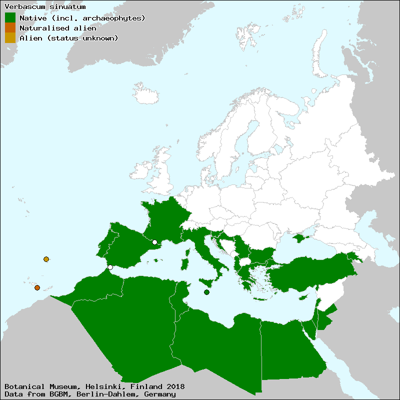 Marhold, K. (2011+): Verbascum. – In: Euro+Med Plantbase - the information resource for Euro-Mediterranean plant diversity. This work is licensed under a Creative Commons Attribution-ShareAlike 3.0 Unported license (CC-By-SA-3.0 Unported).