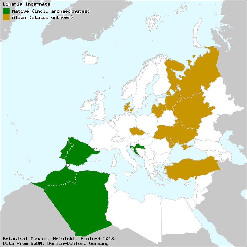 Marhold, K. (2011+): Linaria. – In: Euro+Med Plantbase - the information resource for Euro-Mediterranean plant diversity. This work is licensed under a Creative Commons Attribution-ShareAlike 3.0 Unported license (CC-By-SA-3.0 Unported).