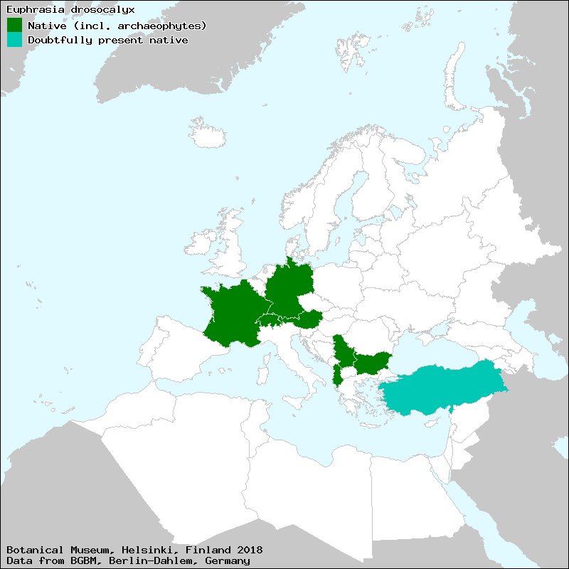 Marhold, K. (2011+): Euphrasia. – In: Euro+Med Plantbase - the information resource for Euro-Mediterranean plant diversity. This work is licensed under a Creative Commons Attribution-ShareAlike 3.0 Unported license (CC-By-SA-3.0 Unported).