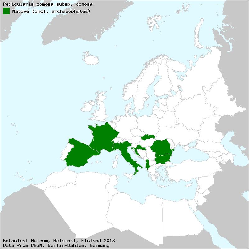 Marhold, K. (2011+): Pedicularis. – In: Euro+Med Plantbase - the information resource for Euro-Mediterranean plant diversity. This work is licensed under a Creative Commons Attribution-ShareAlike 3.0 Unported license (CC-By-SA-3.0 Unported).