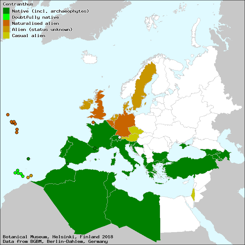 Raab-Straube, E. von (2017+): Centranthus. – In: Raab-Straube, E. von & Henning, T. (2017+): Valerianaceae. Euro+Med Plantbase - the information resource for Euro-Mediterranean plant diversity. This work is licensed under a Creative Commons Attribution-ShareAlike 3.0 Unported license (CC-By-SA-3.0 Unported).