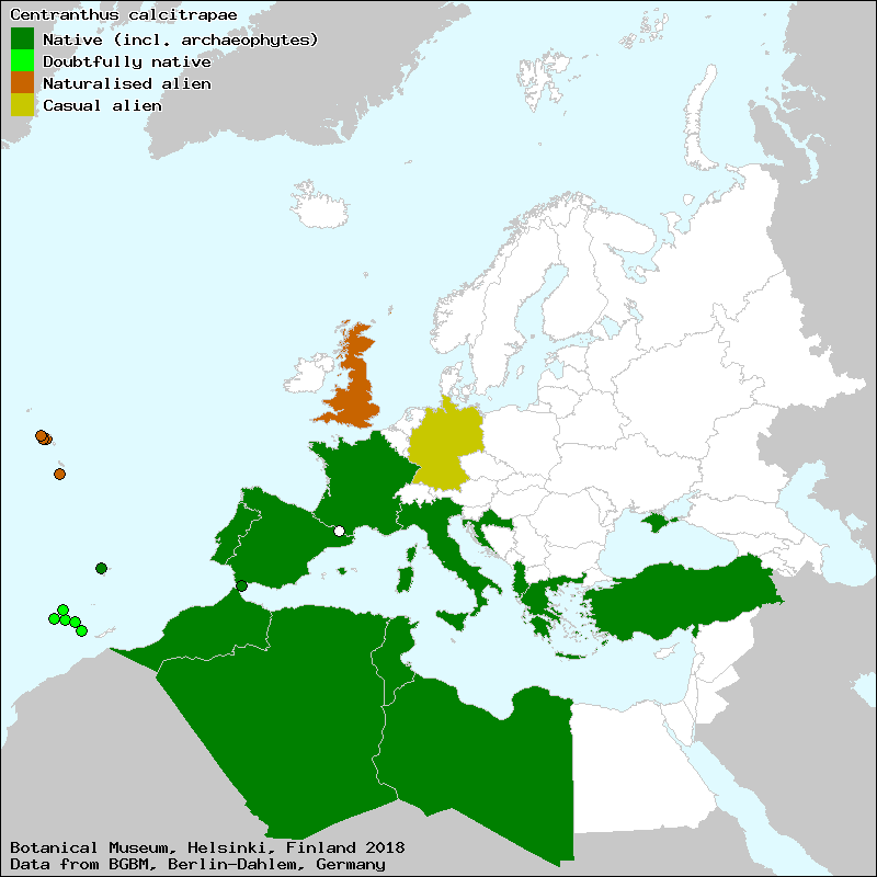 Raab-Straube, E. von (2017+): Centranthus. – In: Raab-Straube, E. von & Henning, T. (2017+): Valerianaceae. Euro+Med Plantbase - the information resource for Euro-Mediterranean plant diversity. This work is licensed under a Creative Commons Attribution-ShareAlike 3.0 Unported license (CC-By-SA-3.0 Unported).