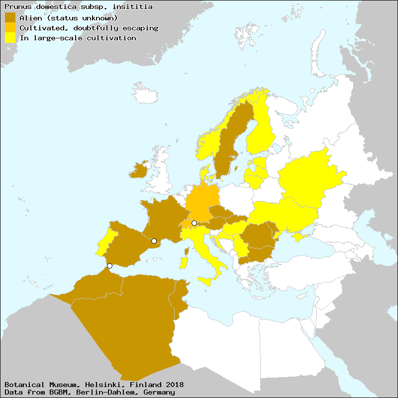 abruñeira (Galician), abruñeiro (Galician), abrunheiro (Portuguese), agruñeiro (Galician), ameixieira (Portuguese), ameixieira brava (Portuguese), andriniegas (Spanish, Castillian), andriniego (Spanish, Castillian), andrino (Spanish, Castillian), arana (Euskera), cabrunho (Portuguese), cagoiçeiro (Portuguese), cagoiço (Portuguese), cascabelico (Spanish, Castillian), cascabelillar (Spanish, Castillian), cascabelillo (Spanish, Castillian), ciruela (Spanish, Castillian), ciruela silvestre (Spanish, Castillian), ciruelicas de gato (Spanish, Castillian), ciruelo (Spanish, Castillian), ciruelo borde (Spanish, Castillian), ciruelo de San Julián (Spanish, Castillian), ciruelo salvaje (Spanish, Castillian), ciruelo silvestre (Spanish, Castillian), endriniego (Spanish, Castillian), endrino (Spanish, Castillian), endrino de injertar (Spanish, Castillian), endrino grande (Spanish, Castillian), endrino mayor (Spanish, Castillian), endrino prunero (Spanish, Castillian), escambrón (Galician), escambrón (Spanish, Castillian), espiño (Galician), espino (Spanish, Castillian), espiño de enxertar (Galician), espino de injertar (Spanish, Castillian), gruñeiro (Galician), gruño (Galician), lapatxondoa (Euskera), maraña fina (Spanish, Castillian), medio-ziruelas (Euskera), niso (Spanish, Castillian), okana (Euskera), okarana (Euskera), prinyoner (Catalan), prunyó (Catalan), prunyoner (Catalan), zeroliquero (Aragonese), zeroquilero (Spanish, Castillian), ziruela-arañonada (Euskera), ziruela-burra (Euskera), ziruela-silbestre (Euskera), αγριοκορομηλιά (Greek), κορομηλιά (Greek), προύμνη (Greek), Προύνος η εμβόλιμος (Greek)[Credits] |