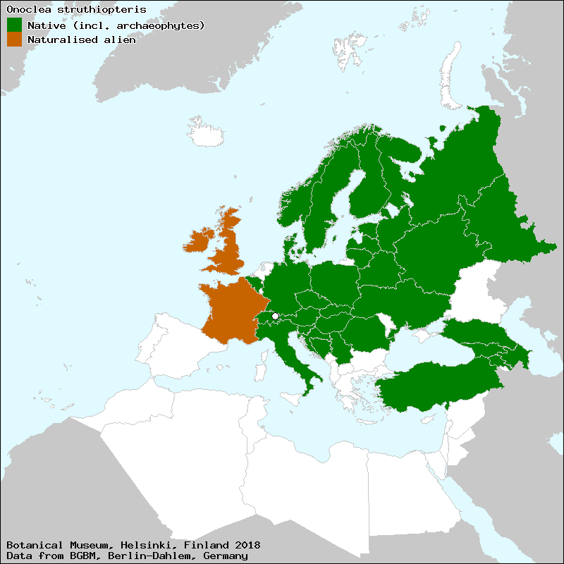 Ostrich Fern (English), Raithneach mhothallach (Irish Gaelic), Felce penna di struzzo (Italian), Felcetta penna di struzzo (Italian), Fougère autruche (French), Harilik laanesõnajalg (Estonian), körfuburkni (Icelandic), kotkansiipi (Finnish), navadna peruša (Slovene), parastā strauspaparde (Latvian), paupinis jonpapartis (Lithuanian), pérovník pštrosí (Czech), perovník pštrosí (Slovak), Pióropusznik strusi (Polish), smeđa stela (Croat), Straußenfarn (German), Straussfarn (German), Struccpáfrány (Hungarian), Strudsvinge (Danish), Struisvaren (Dutch), strutbräken (Swedish), strutseving (Norwegian), Алман дәвәгущу ләләйи Гара айыдөшәйи (Azerbaijan), Страусник обыкновенный (Russian), Страусове перо звичайне (Russian), Черный папоротник (Russian)[Credits] |