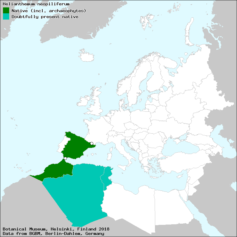 Raab-Straube, E. von (2018): Cistaceae. – In: Euro+Med Plantbase - the information resource for Euro-Mediterranean plant diversity. This work is licensed under a Creative Commons Attribution-ShareAlike 3.0 Unported license (CC-By-SA-3.0 Unported).
