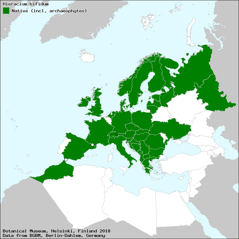 Epervière bifide (French), Épervière bifide (French), Gabel-Habichtskraut (German), Gabeliges Habichtskraut (German), Jastrzębiec siny (Polish), Sparviere inciso (Italian), Viličasta runjika (Croat), Épervière à tige bifide (French), Razcepljena škržolica (Slovene)[Credits] |