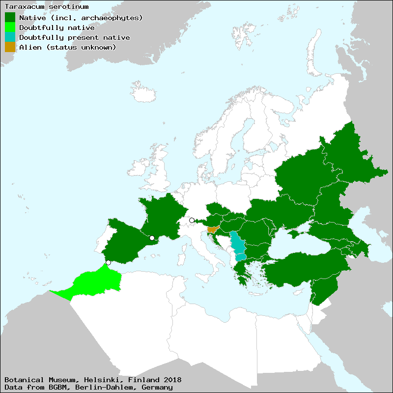 Kirschner, J., Štepánek, J. & Greuter, W. (2007+): Taraxacum. – In: Greuter, W. & Raab-Straube, E. von (ed.): Compositae. Euro+Med Plantbase - the information resource for Euro-Mediterranean plant diversity. This work is licensed under a Creative Commons Attribution-ShareAlike 3.0 Unported license (CC-By-SA-3.0 Unported).