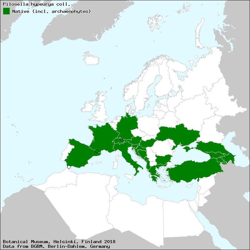 Source: Bräutigam, S. & Greuter, W. (2007-2009): Pilosella. – In: Greuter, W. & Raab-Straube, E. von (ed.): Compositae. Euro+Med Plantbase - the information resource for Euro-Mediterranean plant diversity.