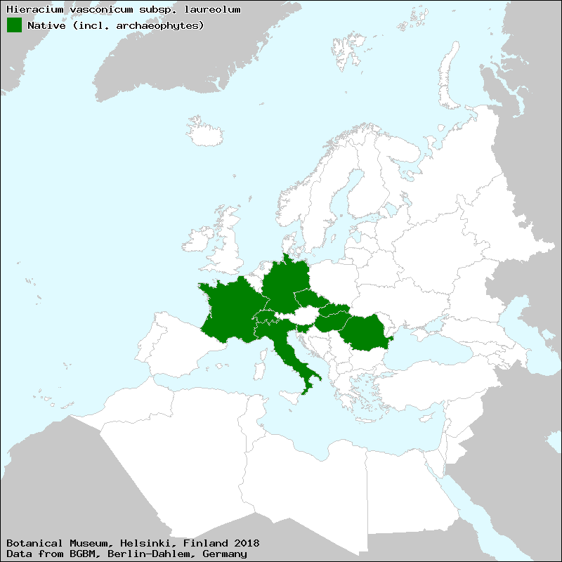 Jastrzębiec laurowaty (Polish), Дафинолистна румянка (Bulgarian), Lorbeerartiges Habichtskraut (German)[Credits] |